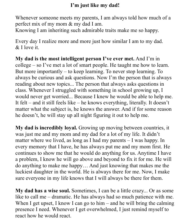 See my daughter describe me in my 2024 Christmas present from her: I'm just like my dad!